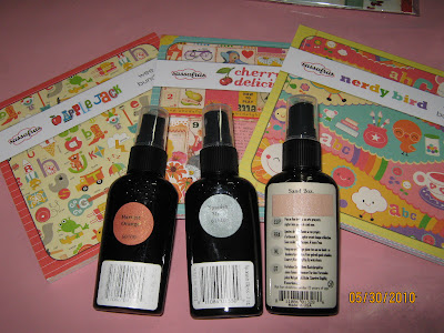 All 3 6×6 Pads of the most recent releases from Sassafras Lass (Nerdy Bird, Apple Jack and Cherry Delicious. Three bottles of Glimmer Mist by Tattered Angels (Harvest Orange, Sand and Forest Moss-Nature Collection)
