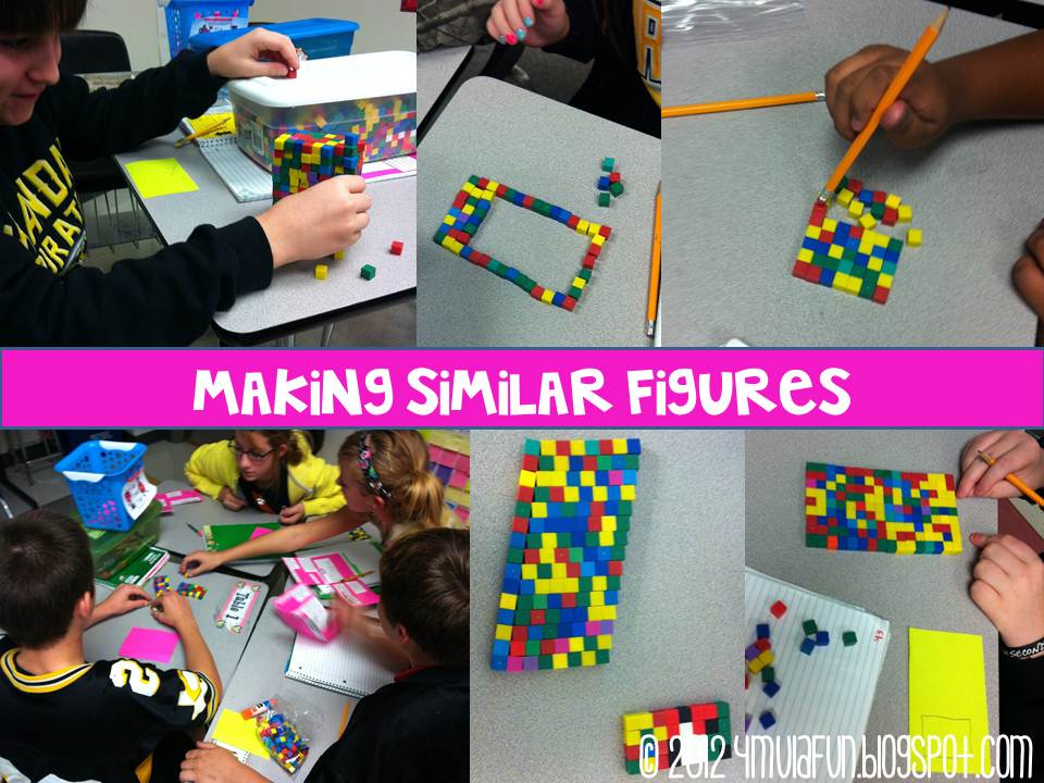 As a wrap-up, they answered a Post It, Prove It for me that asked, “Create two similar figures and prove their similarity through a proportion. Check your work by comparing the ratios in the proportion using cross products or similar figures.”