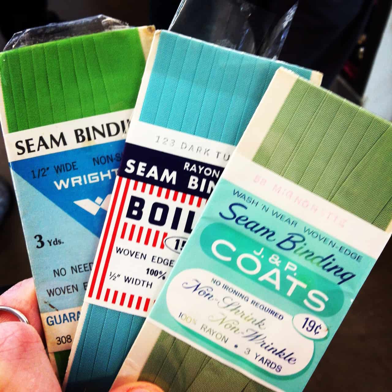 4. Found some great vintage seam binding tape in turquoise and some greens for all less than $1. YUMMY!