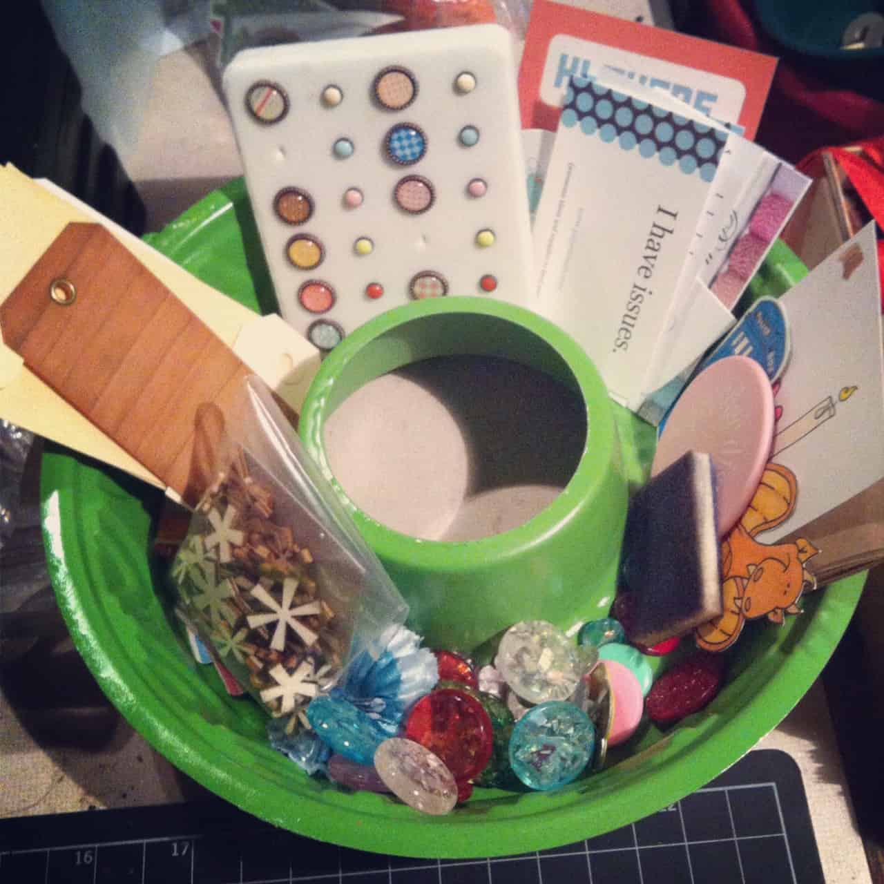 11. Finished filling up my new jello mold full of scrappy goodies. It has come in SO handy on my table.